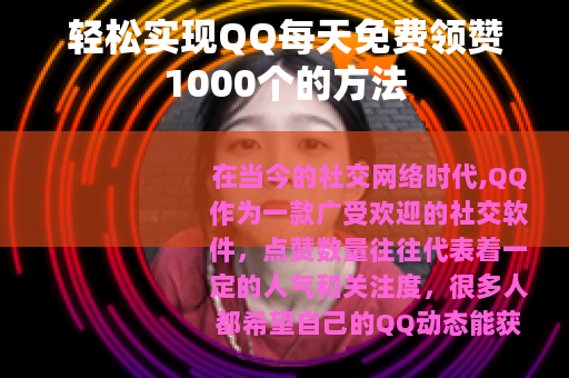 通过以上这些方法的综合运用,我们就能够在QQ上实现每天免费领赞1000个的目标,这不仅能让我们在QQ空间中获得更多的关注和认可,还能增加我们在社交网络中的影响力和人气,让我们一起行动起来,用这些有效的方法为自己的QQ空间增添光彩,收获满满的赞数吧。