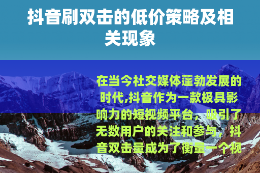 抖音刷双击0.01元100个双击的现象是社交媒体发展过程中的一个特殊现象,它既有其存在的市场需求和商业逻辑,也带来了一系列需要关注和解决的问题,只有各方共同努力,才能让抖音平台在健康、有序的轨道上不断发展壮大,为用户带来更多的价值和乐趣。