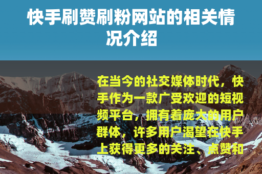 在当今的社交媒体时代,快手作为一款广受欢迎的短视频平台,拥有着庞大的用户群体,许多用户渴望在快手上获得更多的关注、点赞和粉丝,以提升自己的影响力和知名度,在这种需求的推动下,出现了众多所谓的快手刷赞刷粉网站。