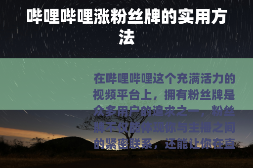 在哔哩哔哩这个充满活力的视频平台上,拥有粉丝牌是众多用户的追求之一,粉丝牌不仅能体现你与主播之间的紧密联系,还能让你在直播间中更加独特和醒目,哔哩哔哩怎么涨粉丝牌呢?下面就为大家介绍一些有效的方法。