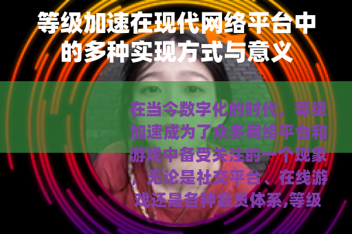 在当今数字化的时代,等级加速成为了众多网络平台和游戏中备受关注的一个现象,无论是社交平台、在线游戏还是各种会员体系,等级加速都有着重要的地位和作用。