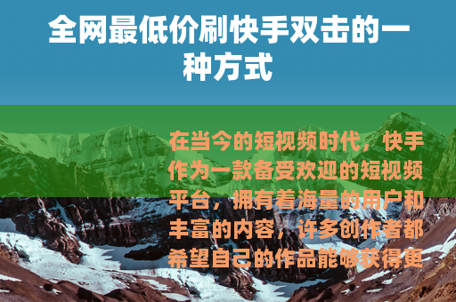 在当今的短视频时代,快手作为一款备受欢迎的短视频平台,拥有着海量的用户和丰富的内容,许多创作者都希望自己的作品能够获得更多的双击,以提高作品的热度和影响力,而全网最低价刷快手双击的话题也因此受到了不少人的关注。
