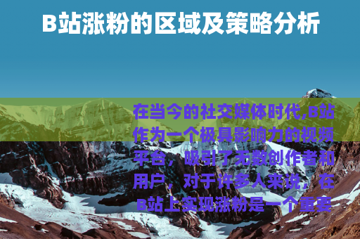 在当今的社交媒体时代,B站作为一个极具影响力的视频平台,吸引了无数创作者和用户,对于许多人来说,在B站上实现涨粉是一个重要的目标,这不仅能带来更多的关注和认可,还可能为创作者带来各种商业机会,在B站上,有哪些涨粉的区域值得我们关注呢?