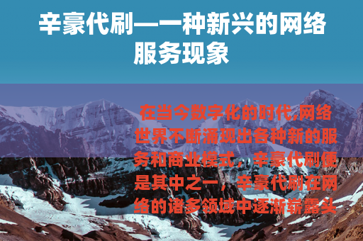 在当今数字化的时代,网络世界不断涌现出各种新的服务和商业模式,辛豪代刷便是其中之一,辛豪代刷在网络的诸多领域中逐渐崭露头角,吸引了不少人的关注。