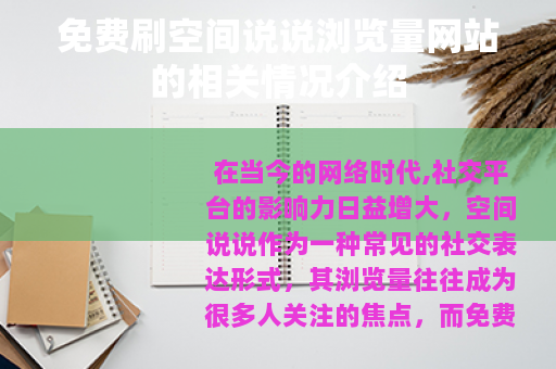 在当今的网络时代,社交平台的影响力日益增大,空间说说作为一种常见的社交表达形式,其浏览量往往成为很多人关注的焦点,而免费刷空间说说浏览量的网站也随之应运而生,为不少用户提供了一种看似便捷的增加浏览量的途径。