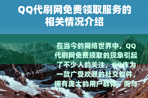 在当今的网络世界中,QQ代刷网免费领取的现象引起了不少人的关注,QQ作为一款广受欢迎的社交软件,拥有庞大的用户群体,而与之相关的各种代刷服务也应运而生,其中免费领取的模式更是吸引了众多用户的目光。