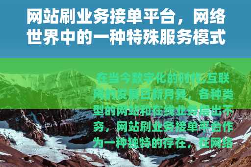 在当今数字化的时代,互联网的发展日新月异,各种类型的网站和在线业务层出不穷,网站刷业务接单平台作为一种独特的存在,在网络的大舞台上扮演着自己的角色。