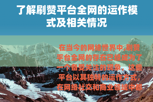 在当今的网络世界中,刷赞平台全网的存在已经成为了一个备受关注的现象,这些平台以其独特的运作方式,在网络社交和商业领域中都有着一定的影响力。