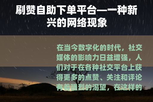 在当今数字化的时代,社交媒体的影响力日益增强,人们对于在各种社交平台上获得更多的点赞、关注和评论有着强烈的渴望,在这样的背景下,刷赞自助下单平台应运而生,成为了一个备受关注的话题。