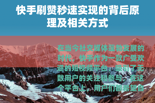 在当今社交媒体蓬勃发展的时代,快手作为一款广受欢迎的短视频平台,吸引了无数用户的关注和参与,在这个平台上,用户们都希望自己的作品能够获得更多的点赞,从而提高作品的曝光度和影响力,而“刷赞快手秒”这样的现象也随之出现,它为用户提供了一种快速增加点赞数量的途径。