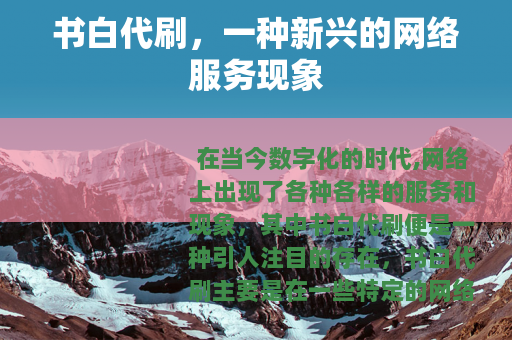 在当今数字化的时代,网络上出现了各种各样的服务和现象,其中书白代刷便是一种引人注目的存在,书白代刷主要是在一些特定的网络平台和应用场景中兴起的,它通常涉及到对某些书籍、文章或其他文字内容的阅读量、点赞量、评论量等数据的提升操作。