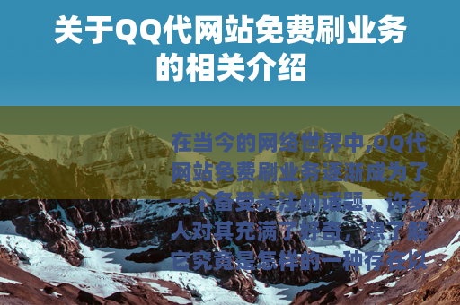 在当今的网络世界中,QQ代网站免费刷业务逐渐成为了一个备受关注的话题,许多人对其充满了好奇,想了解它究竟是怎样的一种存在以及能为用户带来哪些便利。