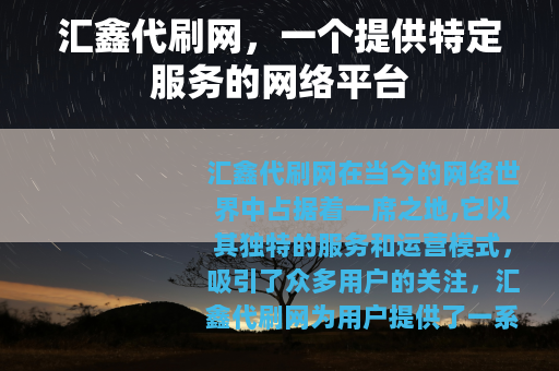 汇鑫代刷网作为一个网络服务平台,在满足用户特定需求方面有着自己的优势和价值,但在使用其服务的过程中,用户需要权衡利弊,合理利用,以实现自身的发展目标,同时也要维护良好的网络环境和市场秩序,汇鑫代刷网才能在合法合规的前提下,持续健康地发展,为用户提供更优质、更可靠的服务。