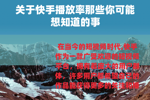 我们要明白,快手的播放率是由多种因素决定的,内容的质量是最为关键的一点,一个有趣、有价值、有创意的视频往往更容易吸引用户的观看和分享,从而自然而然地提高播放率,创作者们需要用心去策划和制作视频,从选题、拍摄到剪辑,每一个环节都要精益求精,才能打造出受大众喜爱的作品。