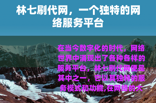 在当今数字化的时代,网络世界中涌现出了各种各样的服务平台,林七刷代网便是其中之一,它以其独特的服务模式和功能,在网络的大舞台上占据了一席之地。