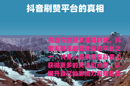 在当今的社交媒体时代,抖音无疑是最受欢迎的平台之一,许多人都希望在抖音上获得更多的关注和点赞,以提升自己的影响力和知名度,这也催生了一些所谓的刷赞抖音平台。