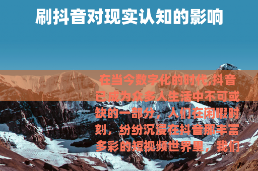 在当今数字化的时代,抖音已成为众多人生活中不可或缺的一部分,人们在闲暇时刻,纷纷沉浸在抖音那丰富多彩的短视频世界里,我们需要意识到,刷抖音可能会在一定程度上模糊我们对现实的认知,让我们看到的世界变得不全。