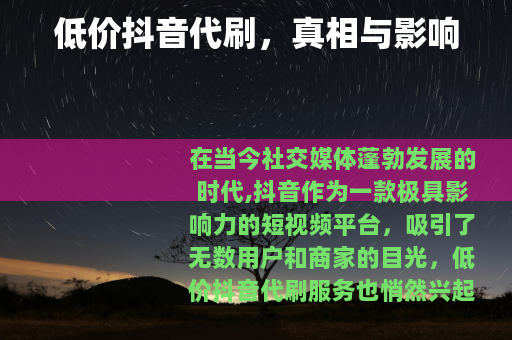 在当今社交媒体蓬勃发展的时代,抖音作为一款极具影响力的短视频平台,吸引了无数用户和商家的目光,低价抖音代刷服务也悄然兴起,成为了一个备受关注的话题。