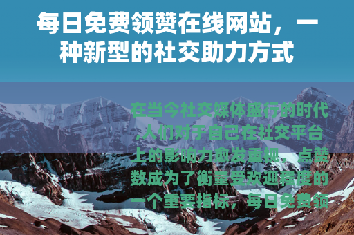 在当今社交媒体盛行的时代,人们对于自己在社交平台上的影响力愈发重视,点赞数成为了衡量受欢迎程度的一个重要指标,每日免费领赞在线网站应运而生,为广大用户提供了一种独特的社交助力途径。