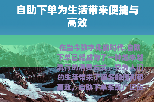 在当今数字化的时代,自助下单已经成为了一种越来越流行的消费方式,它为人们的生活带来了诸多的便利和高效。