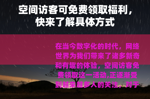 在当今数字化的时代,网络世界为我们带来了诸多新奇和有趣的体验,空间访客免费领取这一活动,正逐渐受到越来越多人的关注。