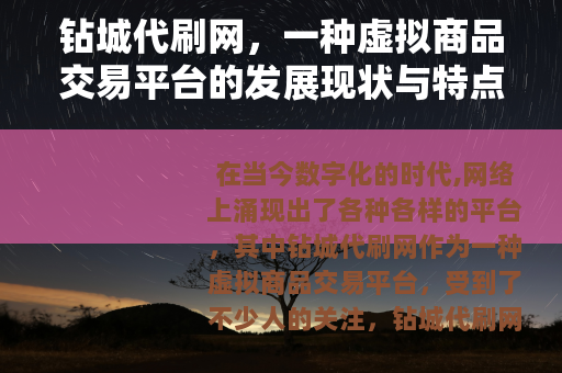 在当今数字化的时代,网络上涌现出了各种各样的平台,其中钻城代刷网作为一种虚拟商品交易平台,受到了不少人的关注。