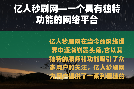 亿人秒刷网在当今的网络世界中逐渐崭露头角,它以其独特的服务和功能吸引了众多用户的关注。
