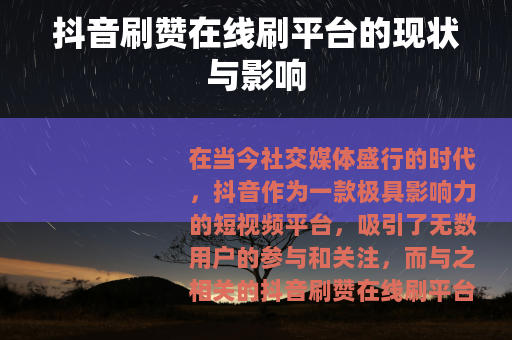 在当今社交媒体盛行的时代,抖音作为一款极具影响力的短视频平台,吸引了无数用户的参与和关注,而与之相关的抖音刷赞在线刷平台也应运而生,成为了一个备受瞩目的现象。