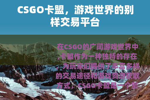 在CSGO的广阔游戏世界中,卡盟作为一种独特的存在,为玩家们提供了丰富多样的交易途径和游戏资源获取方式。