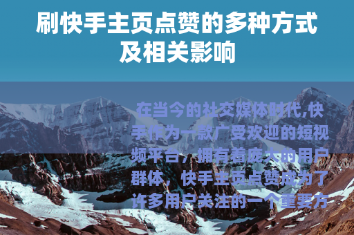 在当今的社交媒体时代,快手作为一款广受欢迎的短视频平台,拥有着庞大的用户群体,快手主页点赞成为了许多用户关注的一个重要方面。