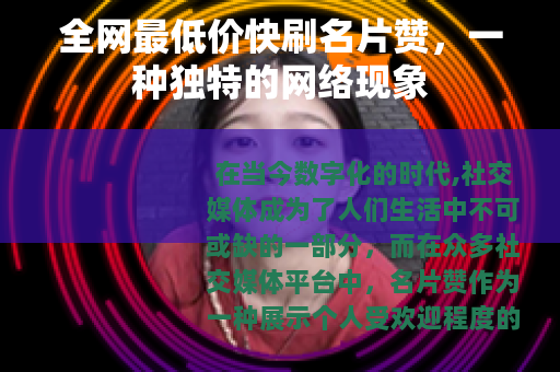 在当今数字化的时代,社交媒体成为了人们生活中不可或缺的一部分,而在众多社交媒体平台中,名片赞作为一种展示个人受欢迎程度的方式,受到了许多用户的关注,全网最低价快刷名片赞的服务也应运而生,吸引了不少人的目光。