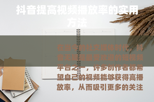在当今的社交媒体时代,抖音无疑是最受欢迎的短视频平台之一,许多创作者都希望自己的视频能够获得高播放率,从而吸引更多的关注和粉丝,抖音如何提高一条视频的播放率呢?以下是一些实用的方法。 是关键,要确保你的视频内容具有吸引力和独特性,可以从热门话题入手,结合自己的特长和风格,创造出与众不同的视频内容,如果你擅长烹饪,那么可以制作一些新颖的美食制作视频,或者分享一些独特的烹饪技巧,要注意视频的趣味性和实用性,让观众在观看视频的过程中既能获得乐趣,又能学到知识或得到某种启发。