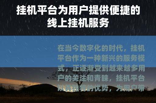 在当今数字化的时代,挂机平台作为一种新兴的服务模式,正逐渐受到越来越多用户的关注和青睐,挂机平台以其独特的优势,为用户带来了诸多便利和机会,在网络世界中开辟出了一片新的天地。