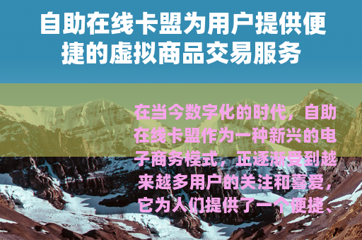 在当今数字化的时代,自助在线卡盟作为一种新兴的电子商务模式,正逐渐受到越来越多用户的关注和喜爱,它为人们提供了一个便捷、高效的平台,使得虚拟商品的交易变得更加轻松和顺畅。
