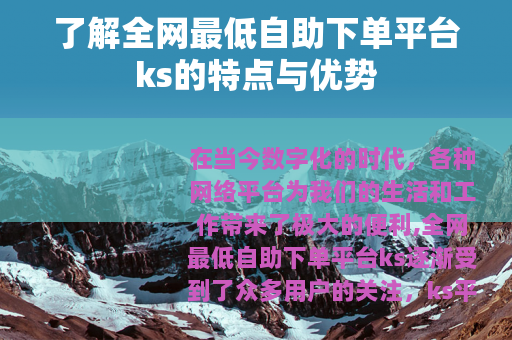 在当今数字化的时代,各种网络平台为我们的生活和工作带来了极大的便利,全网最低自助下单平台ks逐渐受到了众多用户的关注。