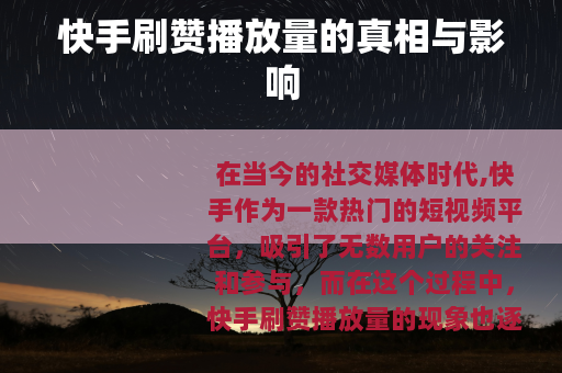 在当今的社交媒体时代,快手作为一款热门的短视频平台,吸引了无数用户的关注和参与,而在这个过程中,快手刷赞播放量的现象也逐渐浮出水面,引发了广泛的讨论。