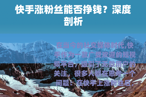 在当今的社交媒体时代,快手作为一款广受欢迎的短视频平台,吸引了无数用户的关注,很多人都在思考一个问题:在快手上涨粉丝后,真的能够挣钱吗?