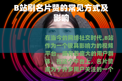 在当今的网络社交时代,B站作为一个极具影响力的视频平台,拥有着庞大的用户群体,在这个平台上,名片赞成为了许多用户关注的一个重要指标,名片赞的数量在一定程度上反映了用户在平台上的受欢迎程度和影响力。