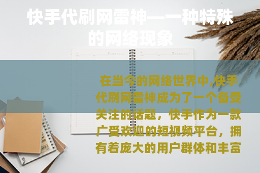 在当今的网络世界中,快手代刷网雷神成为了一个备受关注的话题,快手作为一款广受欢迎的短视频平台,拥有着庞大的用户群体和丰富多样的内容,而快手代刷网雷神则是在这样的背景下应运而生的一种服务。
