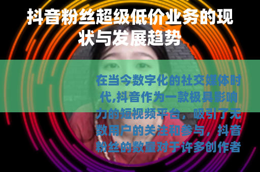 在当今数字化的社交媒体时代,抖音作为一款极具影响力的短视频平台,吸引了无数用户的关注和参与,抖音粉丝的数量对于许多创作者和商家来说具有重要意义,它不仅代表着影响力,还可能与商业机会和收益息息相关,在这样的背景下,抖音粉丝超级低价业务应运而生。