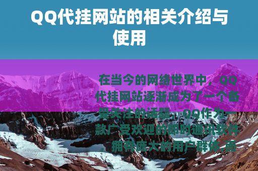 在当今的网络世界中,QQ代挂网站逐渐成为了一个备受关注的话题,QQ作为一款广受欢迎的即时通讯软件,拥有庞大的用户群体,而QQ代挂网站则为用户提供了一种特殊的服务。