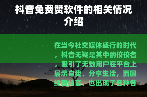 在当今社交媒体盛行的时代,抖音无疑是其中的佼佼者,吸引了无数用户在平台上展示自我、分享生活,而围绕着抖音,也出现了各种各样的辅助工具,其中抖音免费赞软件就备受关注。