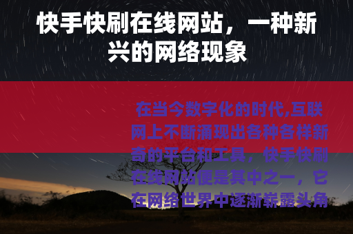 在当今数字化的时代,互联网上不断涌现出各种各样新奇的平台和工具,快手快刷在线网站便是其中之一,它在网络世界中逐渐崭露头角,吸引了众多用户的关注。