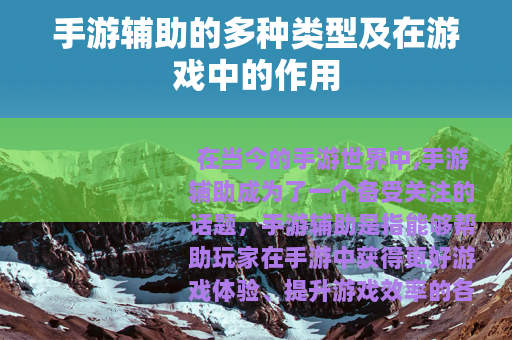 在当今的手游世界中,手游辅助成为了一个备受关注的话题,手游辅助是指能够帮助玩家在手游中获得更好游戏体验、提升游戏效率的各类工具或软件,它涵盖了多种不同的形式和功能,为玩家们带来了丰富多样的游戏玩法和策略选择。