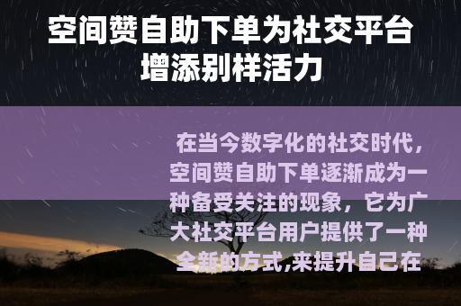 空间赞自助下单作为一种新兴的社交现象,为社交平台的发展和用户的社交体验带来了新的机遇和挑战,它在满足用户社交需求、提升用户影响力等方面具有一定的积极作用,但同时也需要用户正确对待,合理使用,才能真正发挥其价值,让社交平台变得更加丰富多彩,充满活力,只有在真实与虚拟的平衡中,我们才能在社交的世界里走得更远,收获更多有意义的人际关系和宝贵的社交体验。