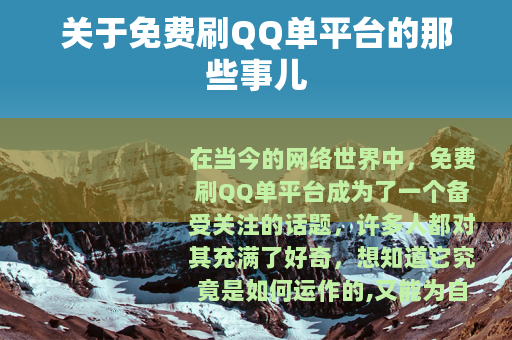 在当今的网络世界中,免费刷QQ单平台成为了一个备受关注的话题,许多人都对其充满了好奇,想知道它究竟是如何运作的,又能为自己带来哪些好处。