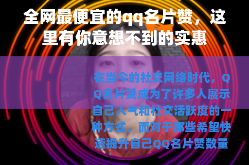 在当今的社交网络时代,QQ名片赞成为了许多人展示自己人气和社交活跃度的一种方式,而对于那些希望快速提升自己QQ名片赞数量的人来说,寻找全网最便宜的qq名片赞资源就成了他们关注的重点。