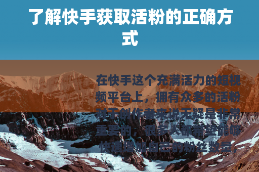 想要在快手上获得活粉,需要通过合法合规、积极健康的方式去努力,不断提升自己的创作能力和账号的价值,这样才能真正建立起一个忠实的粉丝群体,为自己在快手的发展打下坚实的基础。