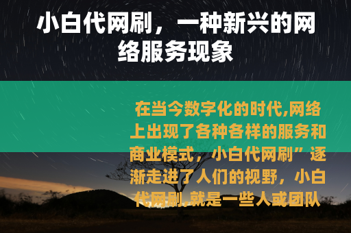 在当今数字化的时代,网络上出现了各种各样的服务和商业模式,小白代网刷”逐渐走进了人们的视野。