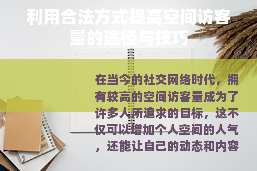 要想免费提高空间访客量,需要从多个方面入手,不断优化空间内容,积极与他人互动,利用社交媒体的传播优势,定期更新空间以及举办有趣的互动活动等,通过这些合法且有效的方法,相信你的空间访客量会逐步提升,让你的社交空间变得更加热闹和受欢迎。